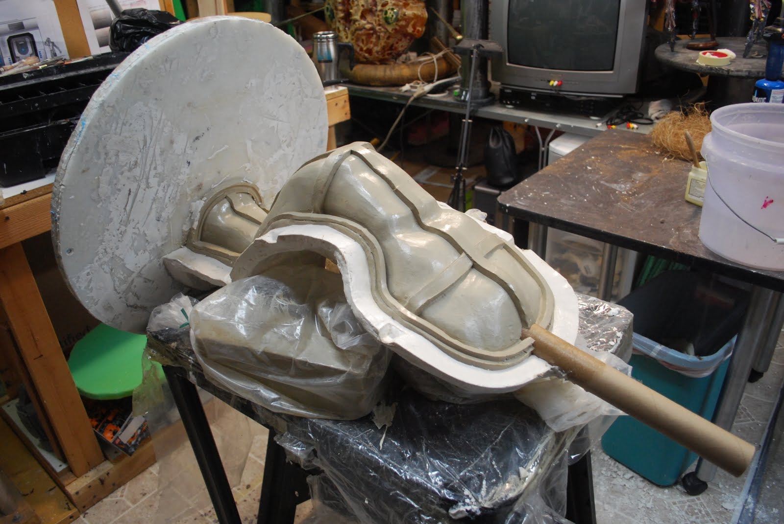Next, I made Hydrocal plaster jackets over the clay layup in my man cave.